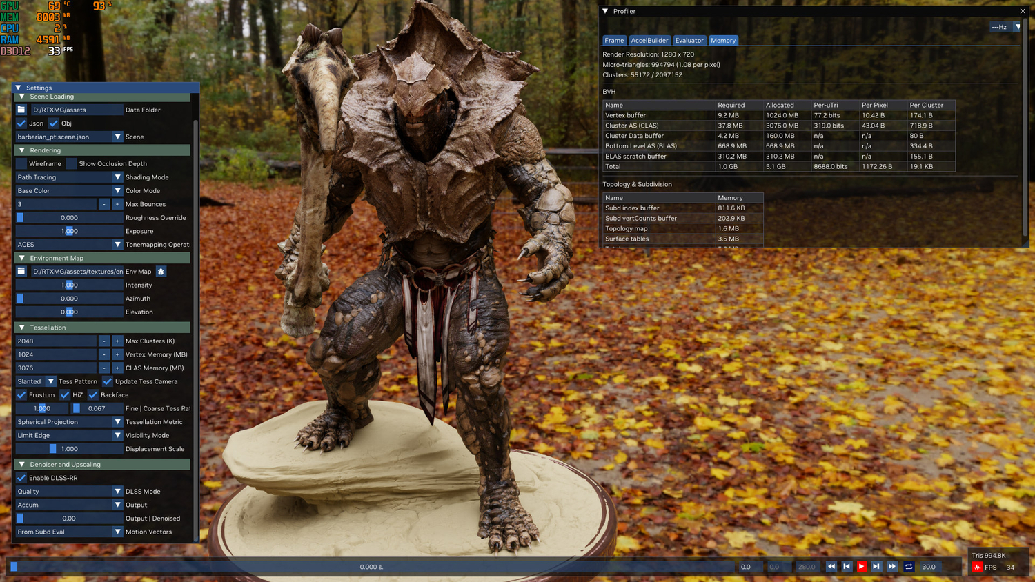 Ещё одной новинкой стала система RTX Mega Geometry, предназначенная для более эффективной обработки сложных сцен с огромным количеством геометрических элементов. Она позволяет работать с моделями, содержащими чрезвычайно высокую детализацию, включая сложную растительность и мелкие объекты.