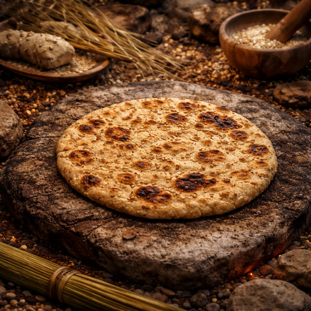 В пещерном комплексе Шанидар (Ирак) археологи нашли обугленные остатки пищи, которые после изучения оказались перемолотыми, предварительно замоченными семенами. По форме они напоминали блин или плоскую лепёшку. Учёные назвали эти находки прото‑блинами.