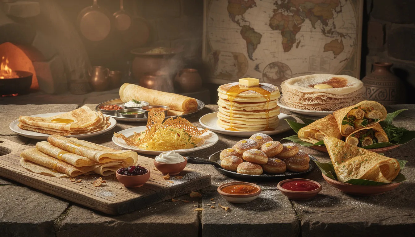 География блинов охватывает весь мир. Но где бы ни готовили это блюдо — в русской избе, на парижской улице, в уличном киоске Пекина или на кухне венесуэльского дома — процесс остаётся почти магическим: жидкое тесто превращается в золотистый круг, дарящий радость и насыщение.